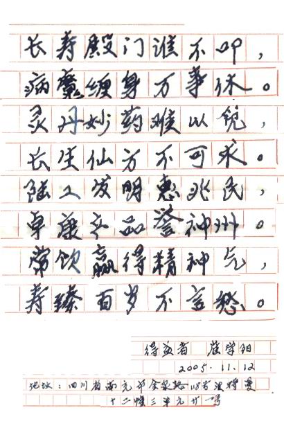 凡尊重中國(guó)古代養(yǎng)生智慧的患者,堅(jiān)持“已饑方食”和定時(shí)主動(dòng)補(bǔ)水者,均可祛病康復(fù)。如牡丹江醫(yī)學(xué)院87歲的張鵬圖飲用半年后高血壓未痊愈,陸江與他通話交流,了解他原先每日主食4兩,建議他用“已饑方食”減少主食肉食量,他理解后,將每日主食減為3兩,少吃兩塊肉,飲用一年治愈26年的冠心病和高血壓。他2003年5月31日來信說:“飲用卓康小分子團(tuán)水是根治高血壓、冠心病、糖尿病的一把金鑰匙,是填補(bǔ)醫(yī)學(xué)空白,為人類造福,應(yīng)推廣該產(chǎn)品?!?/strong>